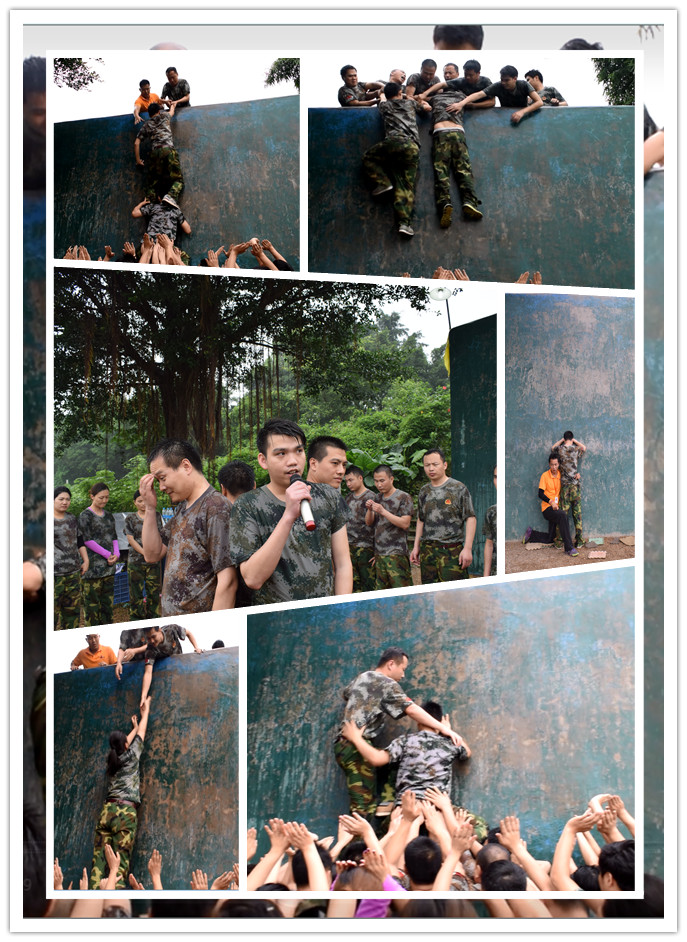 教官似乎看出了我們的顧慮,說了句讓小編感觸蠻深的一句話:人不可能會為了自己認為不可能的事而全力以赴的。然而我們都相信了!也涌現了許多讓我們感動的事跡,為團隊順利過關架橋、為團隊安全撐起的保護傘、為團隊順利通關沖鋒而踴躍充當的“人梯”與“先鋒”隊員。